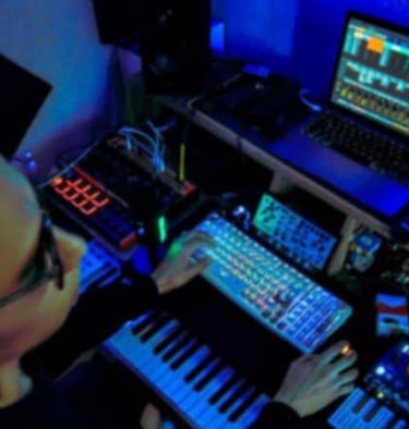 Video-mapping avanzado. El escenario se convierte en un portal hacia una dimensión abstracta.